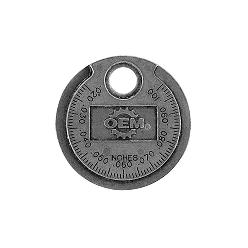- ADJUSTER: While this tool measures the gap on spark plugs, it can also work as an electrode adjuster; To widen the gap, use the small hole in the top of the coin gauge to pull the metal up; Make the gap smaller by pressing the metal against the tool