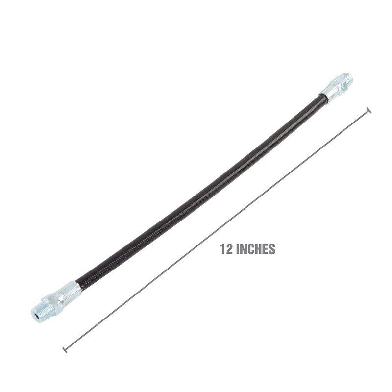 This 12-Inch Grease Gun has 1/8-inch NPT male threads and fits all standard hand operated grease guns. Not for air powered grease guns. Maximum working pressure is 3000 PSI.
