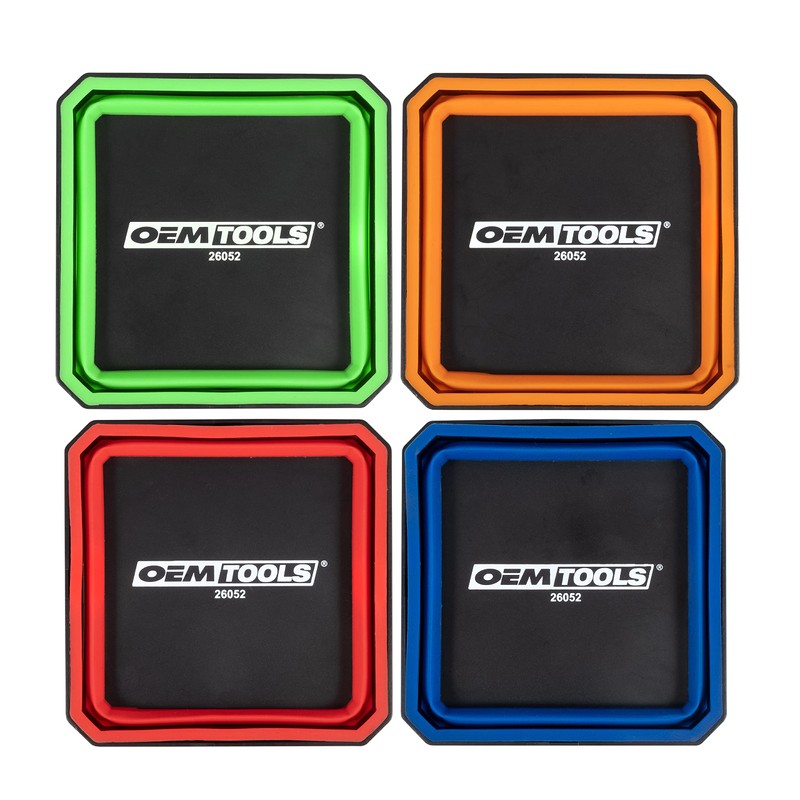 OEMTOOLS 26052 Magnetic Foldable Tray, 4 Pack Collapsible Bowl Set for Small Parts and Tools, Silicone Red, Blue, Orange, Green Tool Tray
