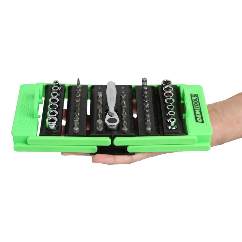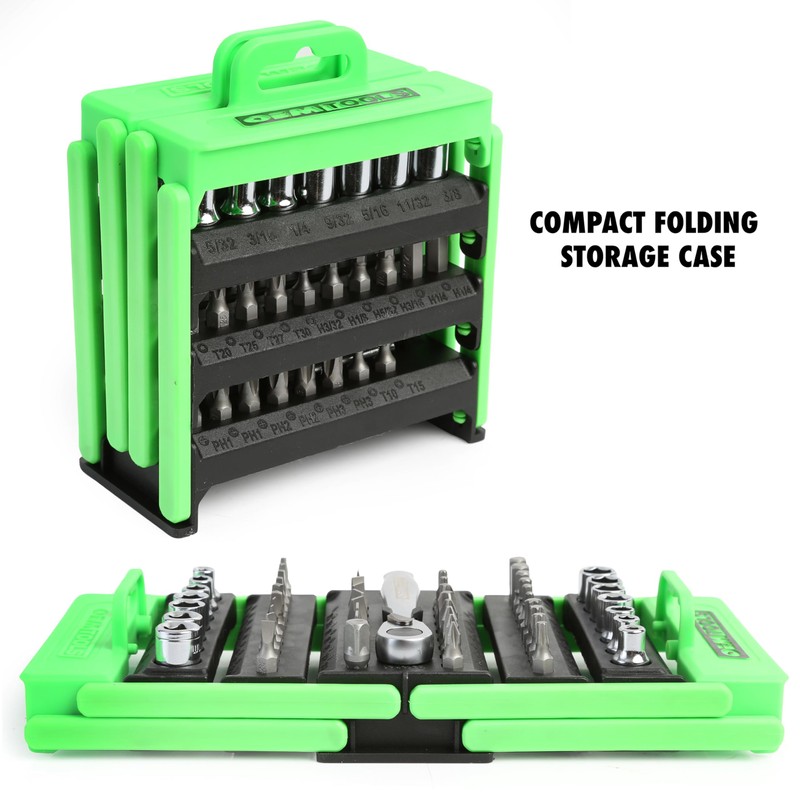 - Organized for Portability: Mini tool set folding storage case keeps sockets, bits, and accessories secure and easy to locate. The compact design fits in drawers, toolboxes, or can be hung from a pegboard for quick access.