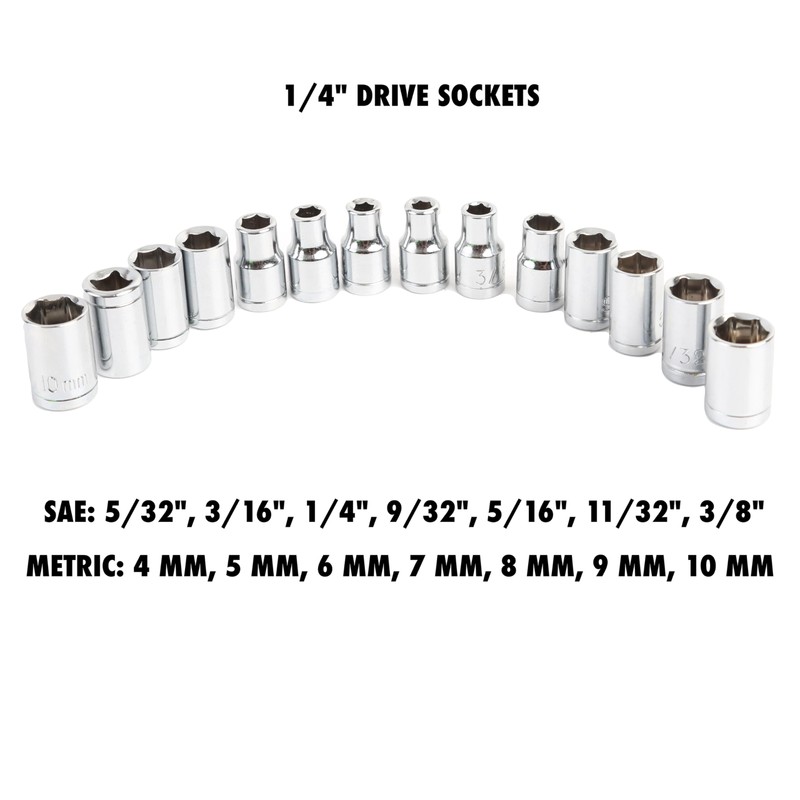 - Versatile Socket Selection: Mechanic tool set includes 14 SAE and metric sockets ranging from 5/32 inch to 10 mm. Whether you're working on automotive repairs or equipment maintenance, this mini ratchet set handles a wide range of fastener sizes.