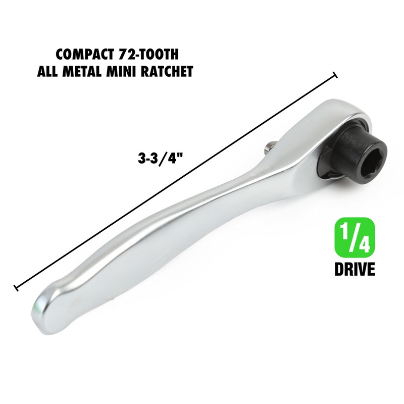- Compact Ratchet for Access: The 72-tooth, mini 1/4 ratchet offers precise control in tight or recessed areas. Forward and reverse 1/4 ratchet wrench action helps users tackle fasteners where full-size tools won't fit, such as dashboards or small enclosures.
