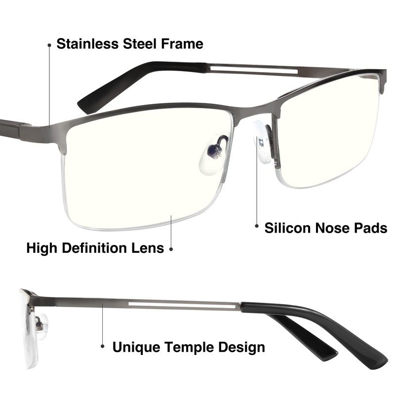 - 【LIGHTWEIGHT READERS FOR MEN】-Reading glasses men, textured metal frame, durable and do not fade.Lightweight metal frame reading glasses with spring hinge ensure comfortable fit without pinching face,Classic rectangular half frame design, suitable for men,no pressure on the nose.
