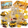 OENUX Play Sand Construction Set, Beach Building Castle Kit w/ 2.2lbs Play Sand, 4 Take Apart Construction Trucks Toys and Signs, Sensory Sandbox with Cover for Boy Girl Kid Toddlers Age 3-8