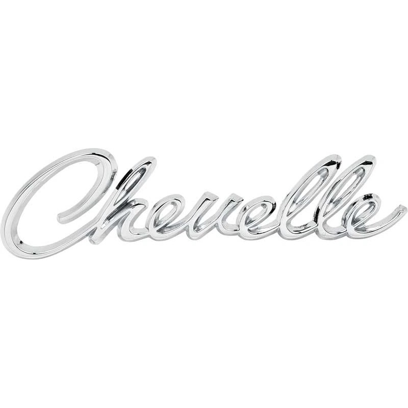 Reproduction of the original Chevelle front header panel emblem designed for use with all 1968-69 Chevrolet Chevelle models. Manufactured in zinc die-cast metal replicating the original in fitment and appearance. Features correct font design with a quality triple chrome plated finish. Includes mounting hardware.Applications:1968-1969 Chevrolet Chevelle