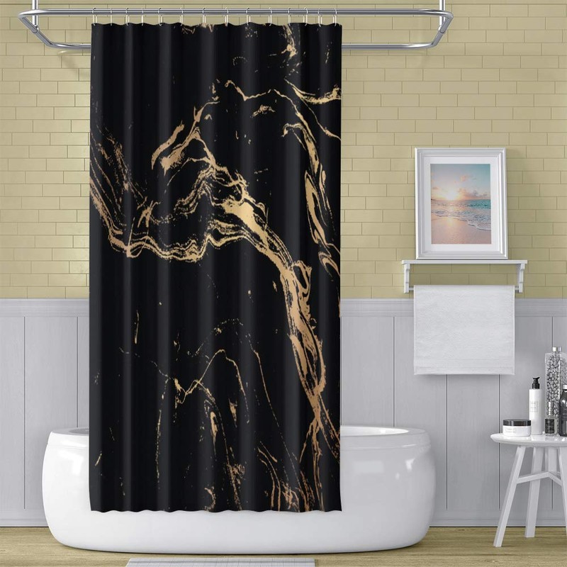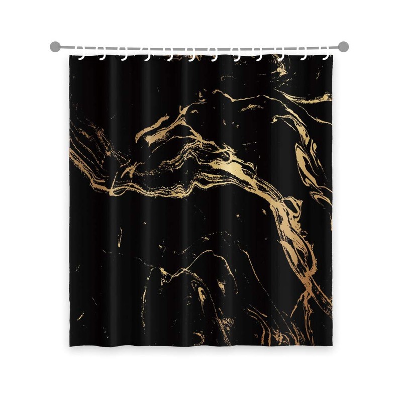 OERJU 65x72inch Marble Texture Shower Curtain Gold Powder Swirl Modern Abstract Art Luxury Black Waterproof Fabric Bathroom Polyester Shower Curtain for Bathtub Showers Machine Washable with Hooks