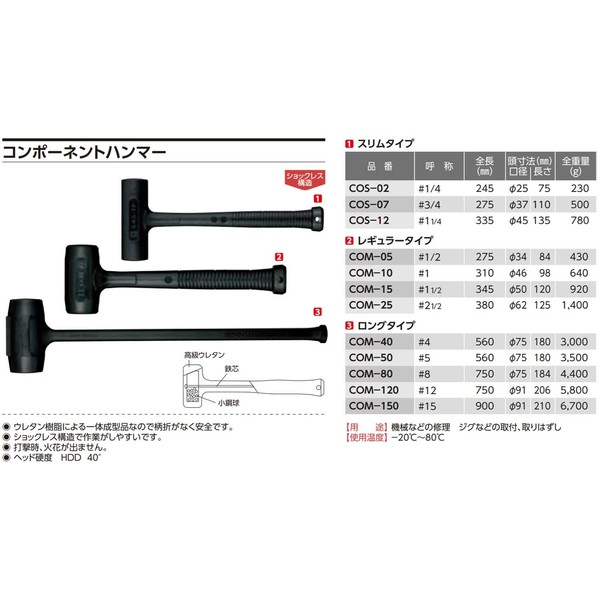 - Features: Shockless construction (non-recoil) provides striking power and excellent workability. Can also be used as explosion-proof
