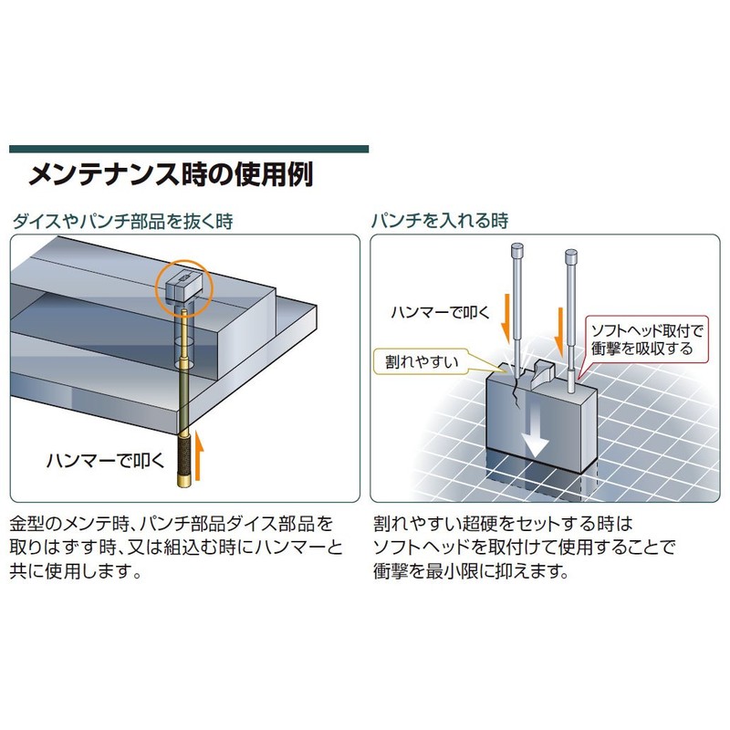 • Applications: Use with hammer when molding maintenance, removing or incorporating punch parts die parts. It can also be used as a pin when you do not want to scratch your other partner
