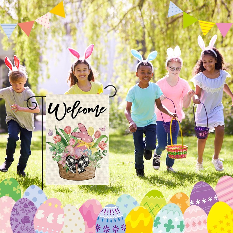 - Wide Application: The welcome bunny easter yard flag outdoor easter decorations garden flags is perfect decoration for any garden、porch patios、decks or balconies, lawns, backyards. Make your garden the focus of the Easter holidays right away, and the easter porch decor flag is the best decoration choice for easter holiday celebrations