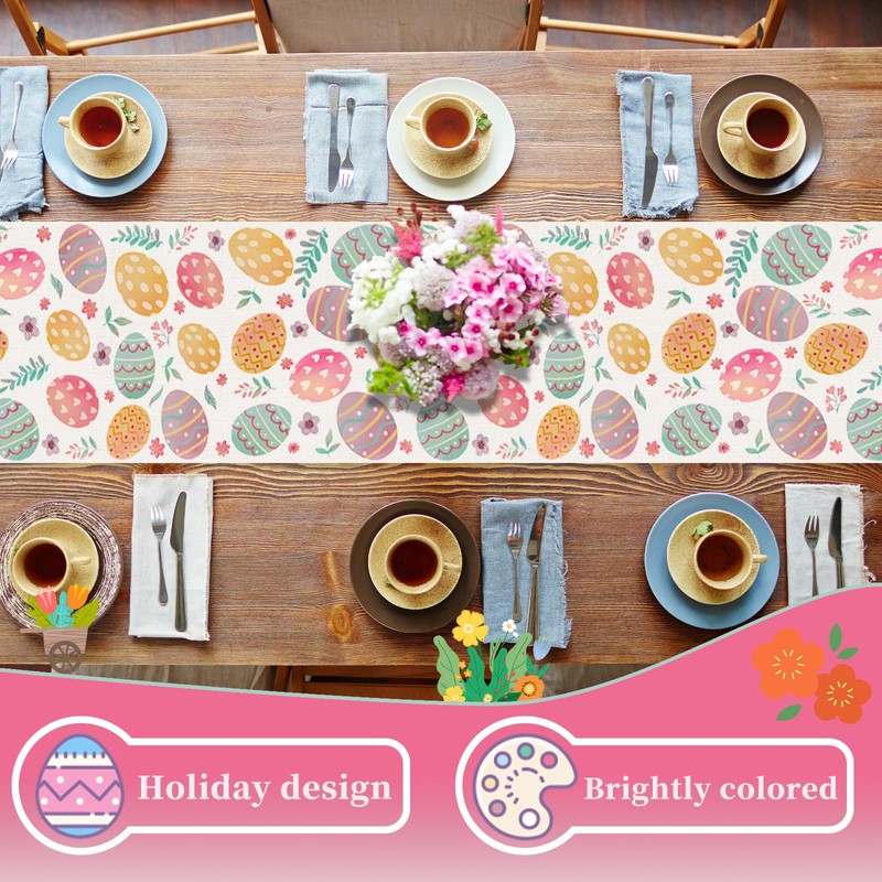 - High Quality Material: The easter decorations table runner made of quality polyester, soft and durable, the easter table decor tablecloth suitable for daily dining tables use, and can also decorate your table at easter to add festive color to the table