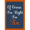 Of Course I'm Right I'm Tia: Notebook Gift, Tia name diary gifts, personalized notebook Tia, Gift Idea for Tia, 120 Pages