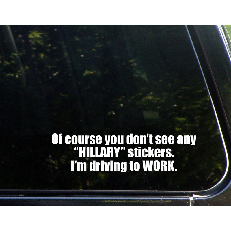of Course You Don't See Any Hillary Stickers I'm Driving to Work - for Cars Funny Car Vinyl Bumper Sticker Window Decal | White | 8.75" inch