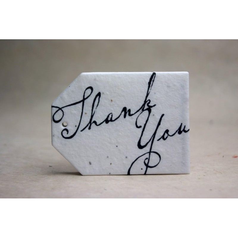 Of The Earth Handmade Paper - Wildflower Seed Paper Hang Tag Tag - B/W Script Variations - 2.5" x 3" - Set of 24 (Thank You)