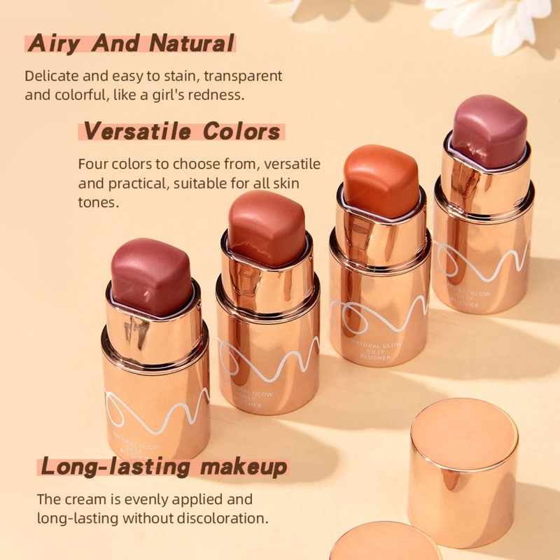 - 【Blush Stick】This blush stick can be used on eyes, cheeks and lips. Whether you want to make eyeshadow, blush, outline or lip color, it can help.The cream is delicate and smooth, giving you a natural makeup. It can add a natural luster to your skin tone.