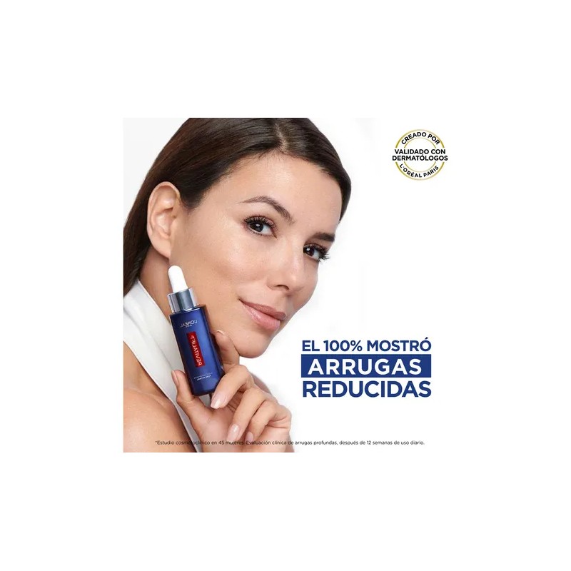 "¡El retinol puro al 0.3% recomendado por dermatólogos ahora en un pack x2 con 37% de descuento! El Sérum Revitalift de L'Oréal Paris es clínicamente probado para reducir arrugas profundas, líneas de expresión y mejorar la elasticidad de la piel mientras duermes.