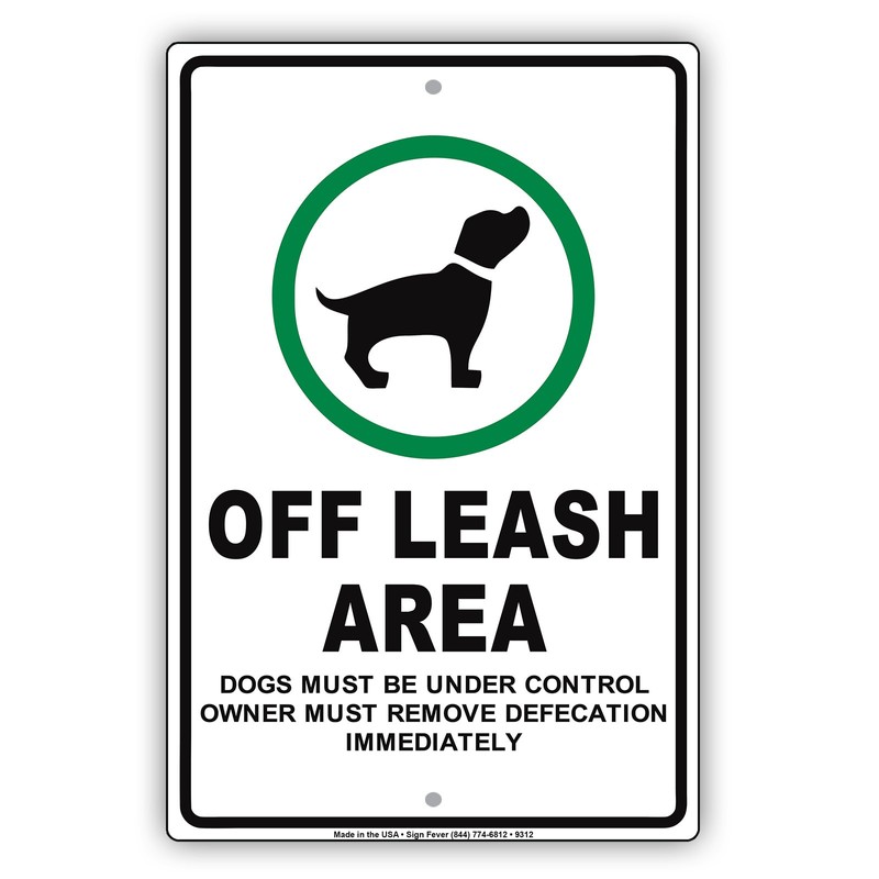 Off Leash Area Dogs Must Be Under Control Owner Owners Must Remove Defecation Notice Aluminum Note Metal 12"x18" Sign Plate