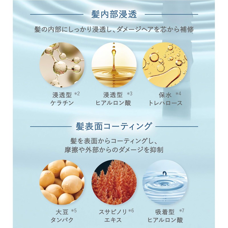 美髪美容成分(水を含む)98以上、1本3役で毛先ダメージをしっかり補修