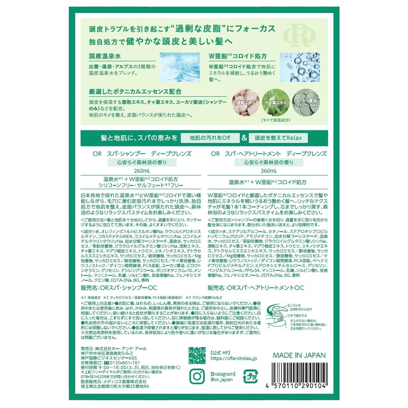 Off&Relax OR Spa Shampoo Treatment Set, Deep Cleanse, 9.2 fl oz (260 ml), Peaceful Forest Bath Scent, Compact Bottle Set