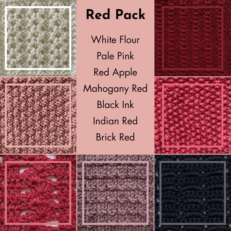 Off-The-Yak Medium Worsted Weight #4, Knitting and Crocheting Woolen Yarn Variety Pack of 7 Skeins (840yds/700g), 25% Yak, 50% Wool, 25% Acrylic (Red Pack)