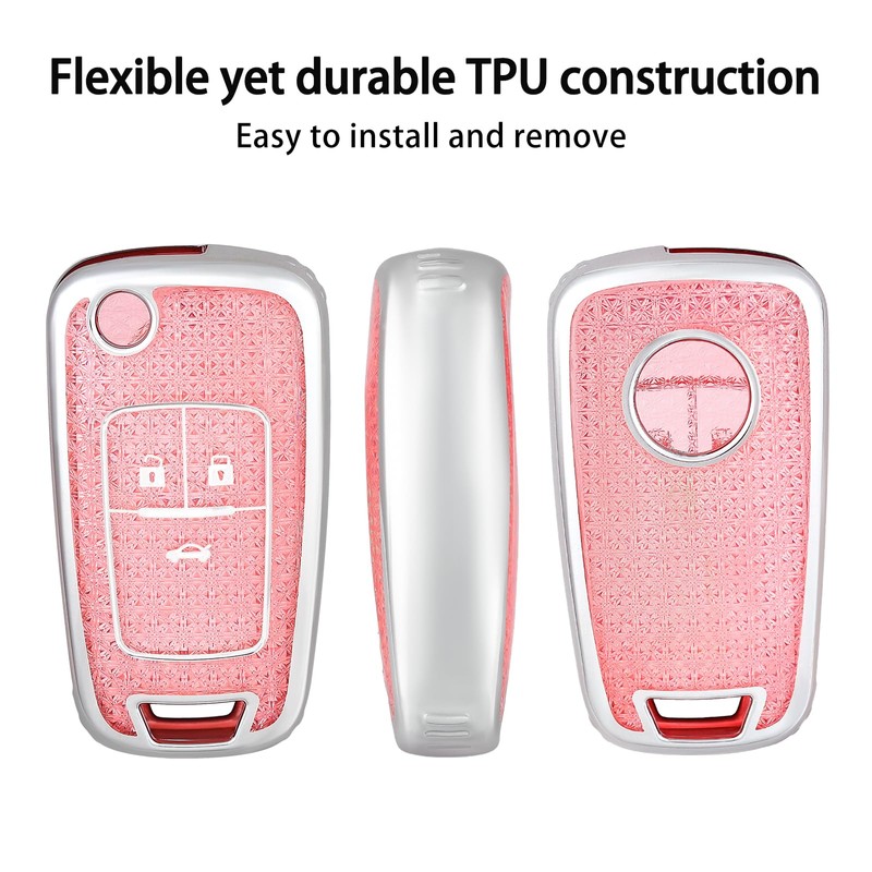 OFF WE GO Car Key Cover Case Car Key Fob for Opel Vauxhall Astra Gtc Insignia Vectra Cruze Captiva Orlando Insignia Full Protection Car Keychain Shell Car Key Holder Box 3 buttons, Pink Silver
