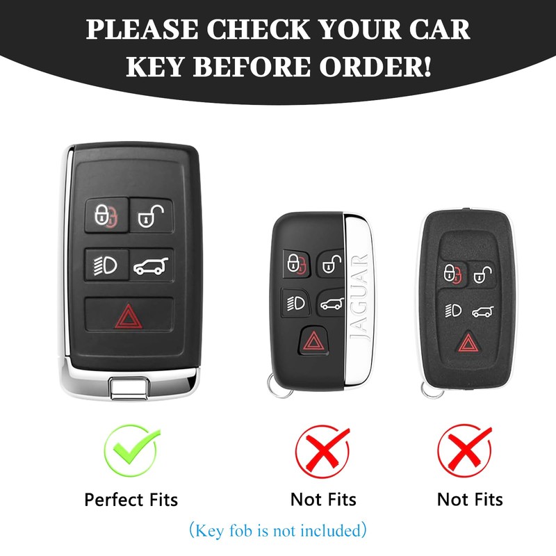 - 🚗【Fits Model】The key fob cover is Compatible with Range Rover Evoque Sport Velar Land Rover Discovery Freelander2 LR4 Jaguar F-Pace 5 Buttons Smart Key. Note: Due to model, year, configuration differences,the key will be different,please verify the key details in the second picture.