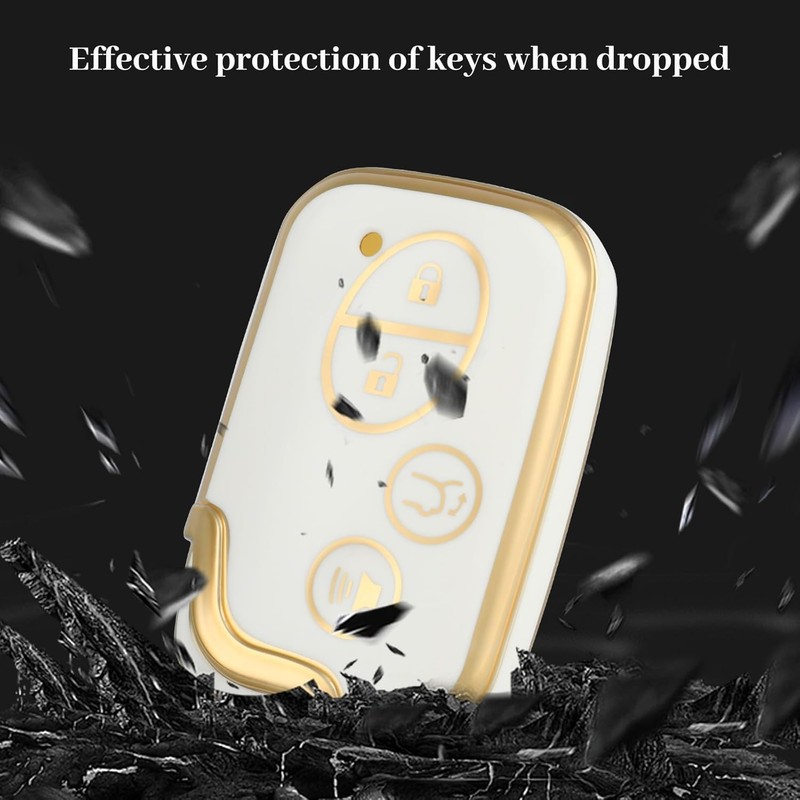 OFF WE GO for Lexus Key Fob Cover, TPU Key Fob Case Shell fit for Lexus GX460 RX350 IS250 LX570 ES350 IS350 GS430 GS300 GS450h Smart Remote Control Key Protector (Gold White)