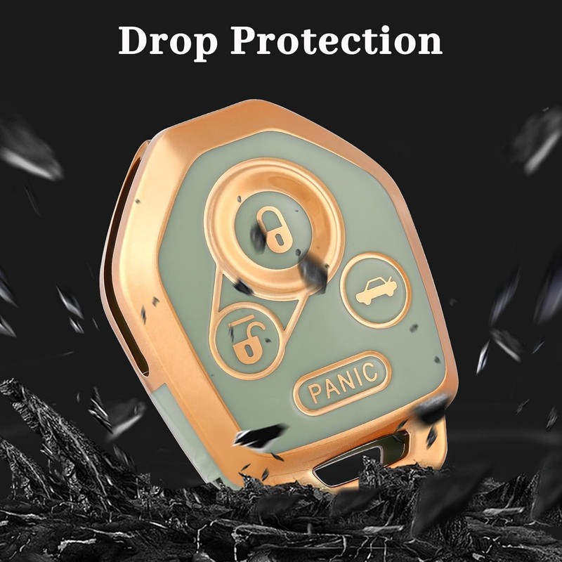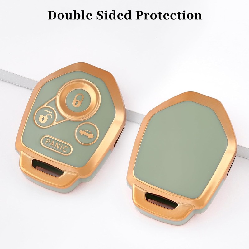 OFF WE GO for Subaru Key Fob Cover, Soft TPU Protection Key Fob Case Compatible with Subaru Ascent Crosstrek Forester Impreza Legacy Outback Solterra BRZ WRX STI XV Smart Car Key (Gold Green)