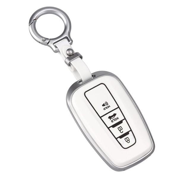 OFF WE GO for Toyota Key Fob Cover with Keychain, Zinc Alloy and TPU Protection Key Case for 2018-2025 Toyota Camry RAV4 Highlander Avalon C-HR Prius Corolla GT86 Smart Key Holder, White