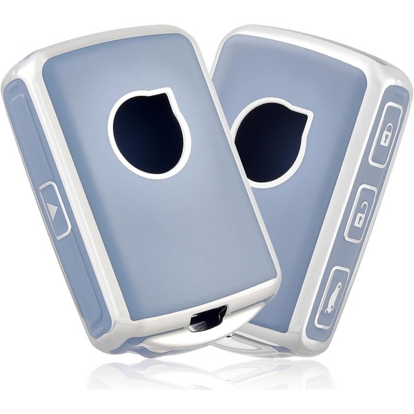 OFF WE GO for Volvo Key Fob Cover, Soft TPU Protection Key Fob Case Compatible with Volvo XC40 XC60 XC90 S60 S90 V60 V90 Polestar 1 Polestar 2 Smart Car Key Accessories (Silver Blue)