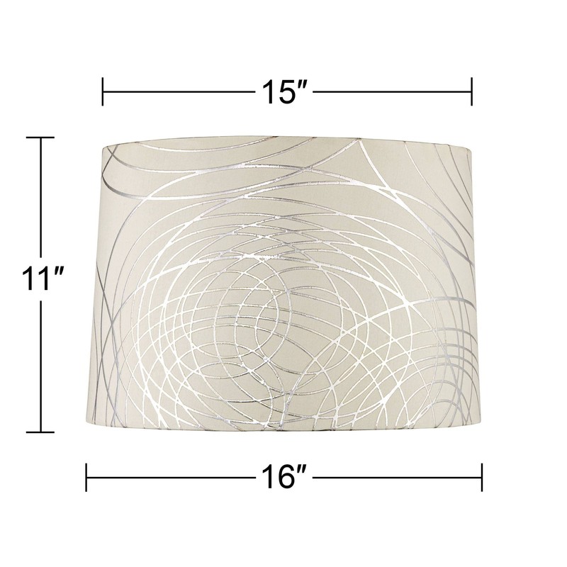 Cream with Silver Circles Large Drum Lamp Shade 15" Top x 16" Bottom x 11" High (Spider) Replacement with Harp and Finial - Springcrest