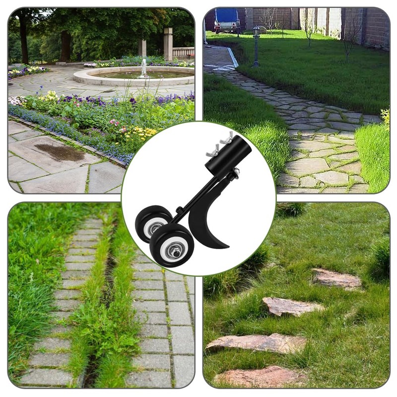 - đăEasy to use and installăThe gap weeder comes with a roller design, which can easily scrape weeds adhering to the edge of the gap. Gardening weeding tool. Only one person needs to drag the weeder across the grass gap, and it can hook the grass roots and shovel them out of the soil to prevent weeds from growing again.