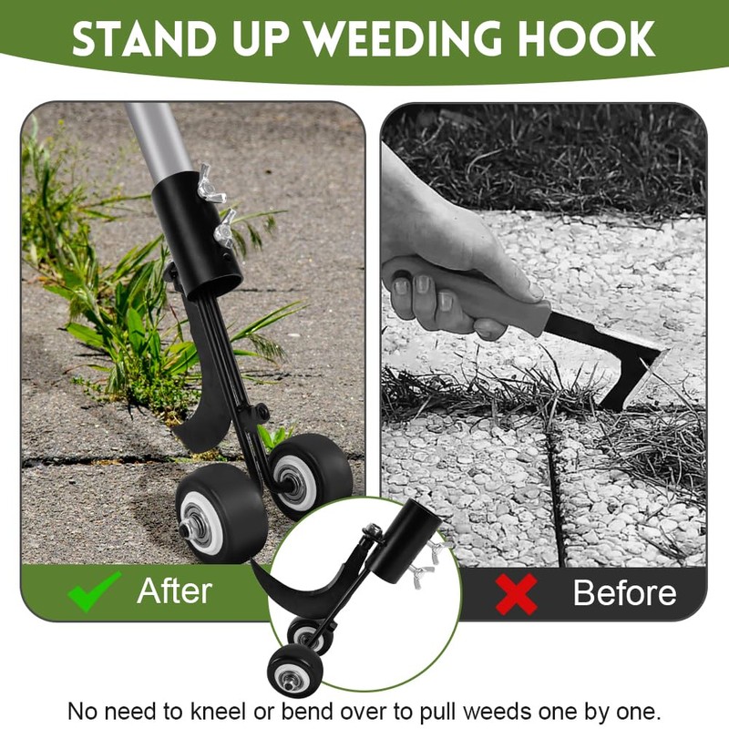 - đăQuick RemovalăQuickly remove weeds in a few minutes, no need to kneel or bend down to pull weeds out of the ground in one go. Small size, easy to store and carry. The gap weed connector is suitable for any handle. Just turn the screw to adjust and fix, it is an excellent gardening tool for removing weeds. (Handle not included in the package).