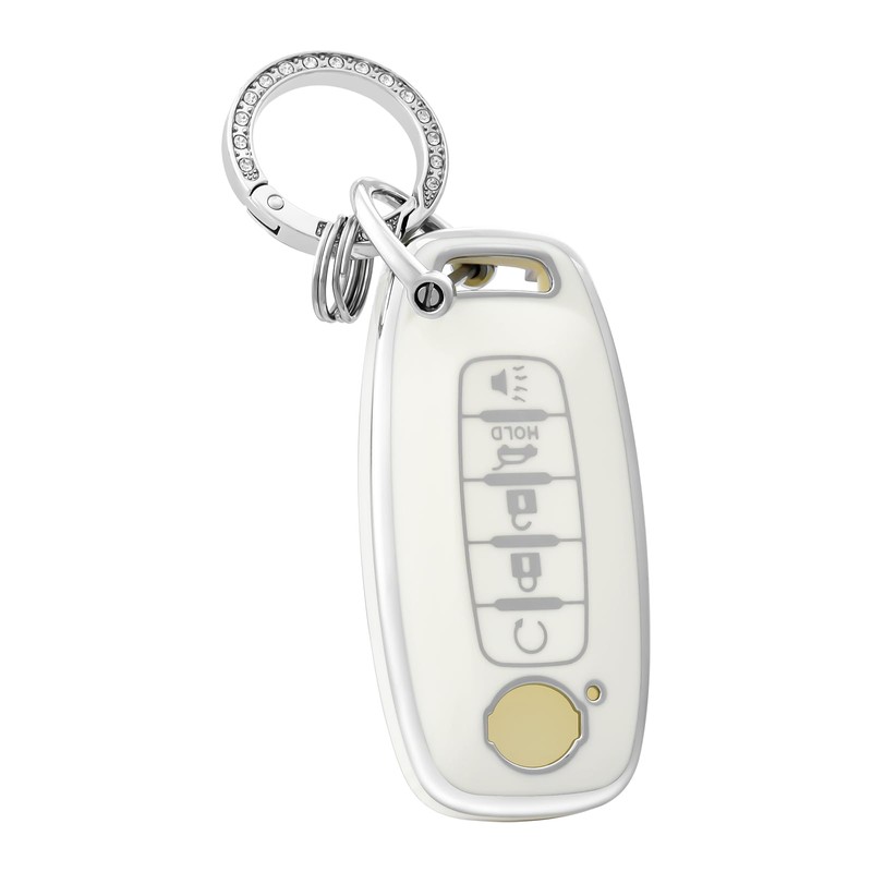OFFCURVE Key Fob Cover with Keychain for Nissan, Key Fob Case Cover Holder for 2023 2024 Nissan Pathfinder Rouge 4Runner 5 Buttons Smart Key Car Accessories Key Remote Case Shell Protector, White