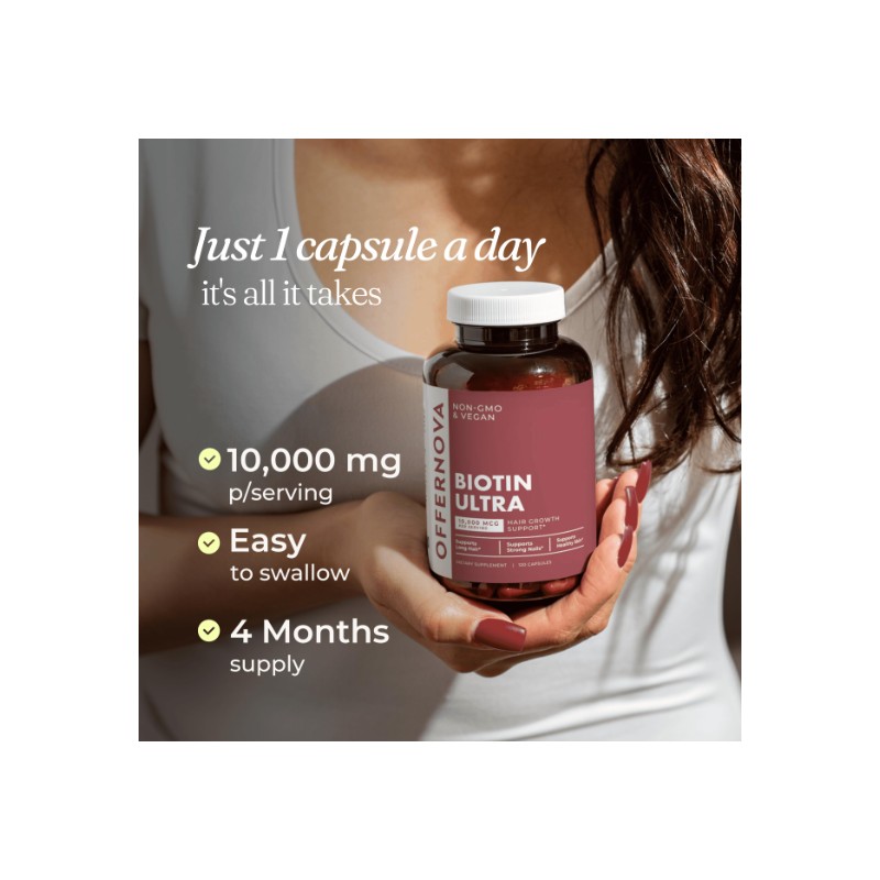 Ultimate Hair Growth Support: Biotin Ultra delivers 10,000 mcg of biotin in just one daily capsule—120 capsules for 4 months of powerful hair growth support.