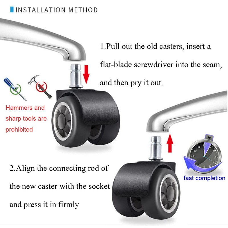 - FIT OFFICE CHAIRS : with standard size 11mm rod diameter, will fit 99% of standard stem five wheel office chair (Doesn't fit IKEA office chairs), making the work easier and more convenient for the user.