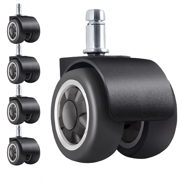 Office Chair Caster Wheel, Replacement Caster Rubber Wheels with Tire Widened Design for Protecting Floors 11mm x 22mm (7/16" X 7/8") Standard Stem Size Easy Install Set of 5