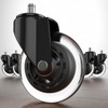 - ⭐NO NOISE: Our replacement chair wheels have two precise bearings and a wheel-shell made of soft polyurethane ensure fast and quiet office chair wheel-rolling on any surface - without any noise. Practically without effort, you can change the chair's direction of movement thanks to the third precision bearing in the wheel's turning mechanism.