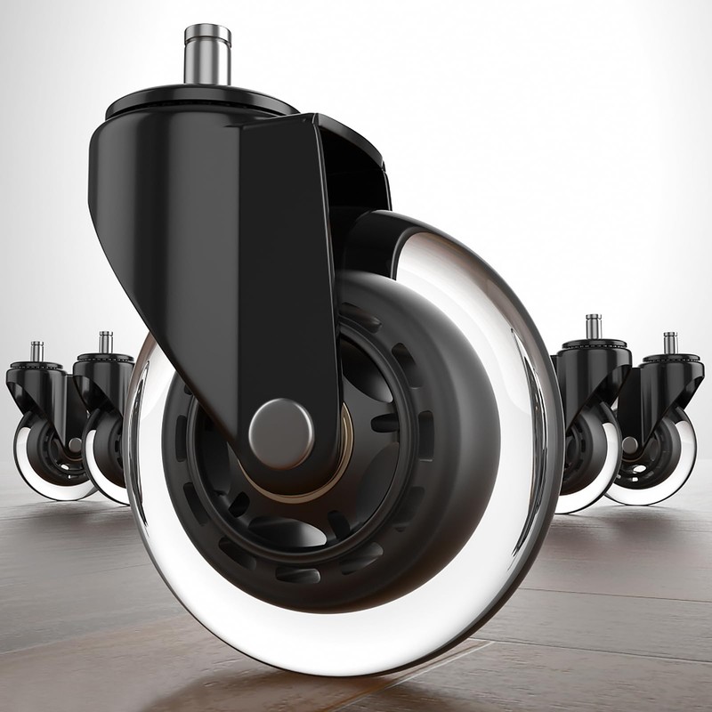 - ⭐COOL - MODERN - ATTRACTIVE: These gorgeous Office Casters Wheels with clear, see-through wheels will turn your favorite home office chair into attractive, modern furniture. Our replacement casters wheels are the absolute best upgrade among many office chair accessories.