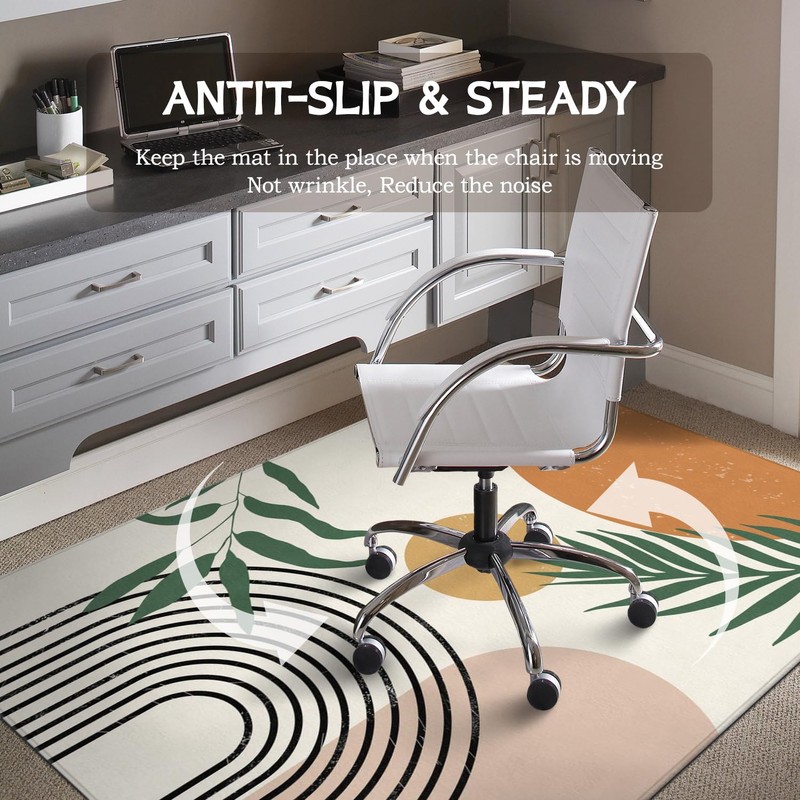 - Non-Slip & Move Easily:The chair mat features a non-slip rubber bottom design that securely anchors it to the floor, Very convenient for people who need to move around in office chair.It’s suitable for hardwood floor, marble, low pile carpet, cement, ceramic tiles and laminate floor. Moreover, it efficiently reduces the noise produced by rolling chairs, guaranteeing a natural and quiet working environment for you