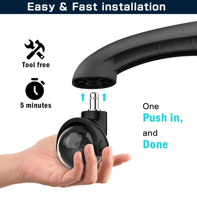 - High Quality Material:Our roller chair wheels feature universal compatibility grip loop bars of industrial grade steel (0.9inch*0.4inch) that fit 99% of other office chair brands. The office chair replacement wheel best alternative for you to transform that squeaky, noisy chair. IMPORTANT NOTE: It does not fit IKEA chairs