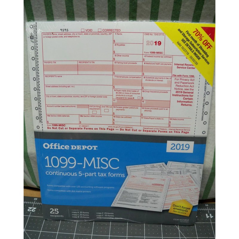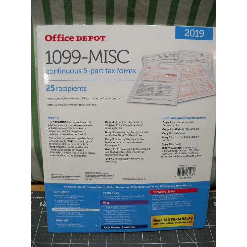 Office Depot 1099-Misc Continuous 5 Part Tax Forms 2019 25 Count USA Tax Staples