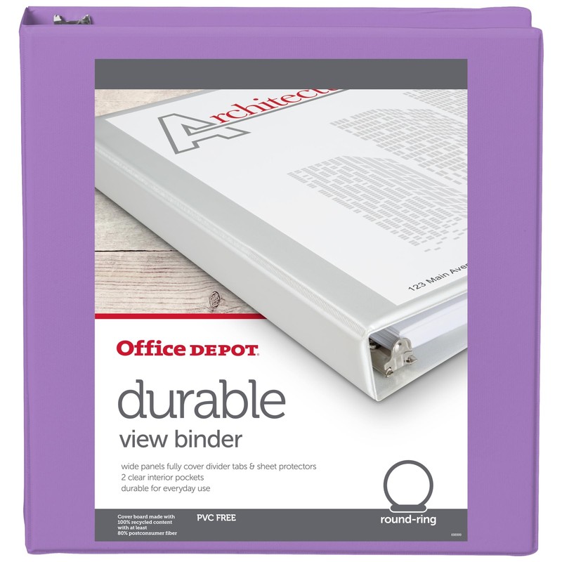 - Great for homework assignments and office records, this Office Depot durable view round-ring binder helps keep important papers together. Add a label to the covers and spine to ensure the binder can easily be identified when you need it most.