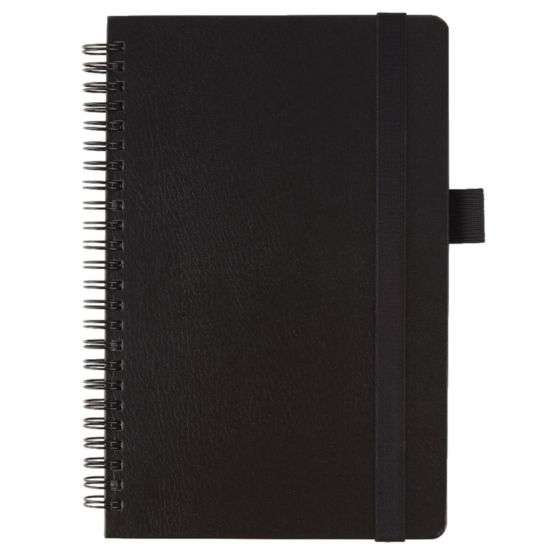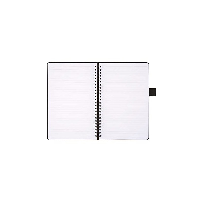 - Hard cover shields important notes from spills and other damage. Lay-flat design enables margin-to-margin writing.