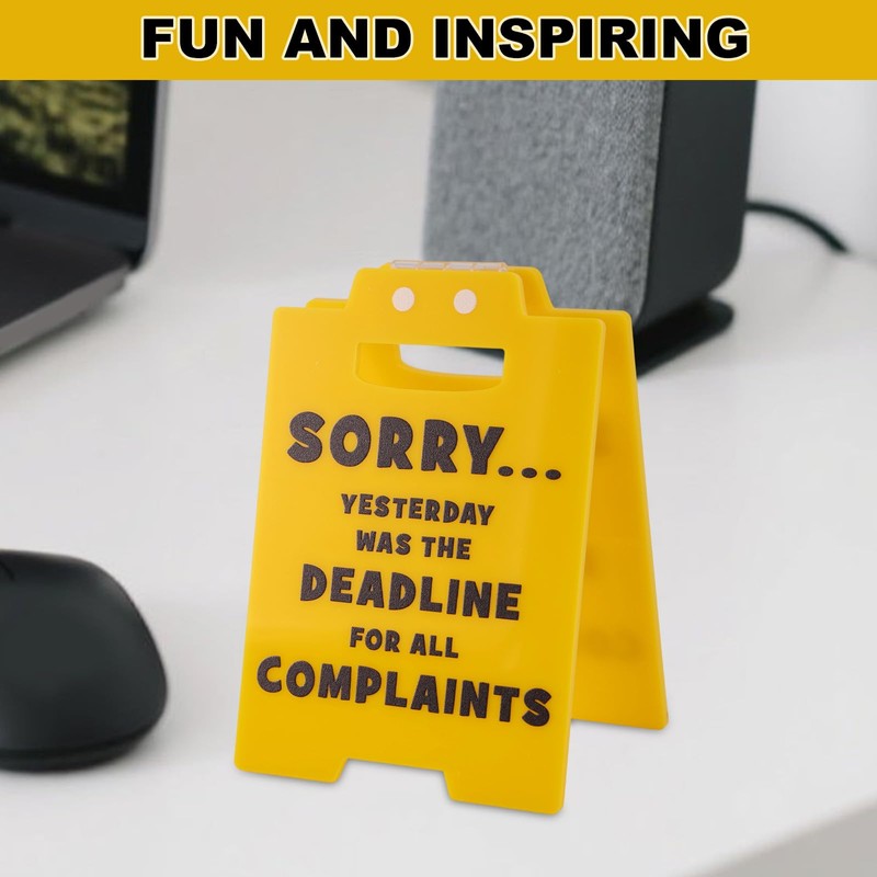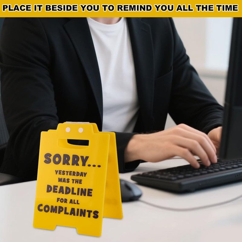 Office Desk Warning Sign, Yellow Funny Team Office Gifts Desk Sign Teams Gag Gifts for Coworker Teammate Employee Boss Manager (Deadline for All Complaints)