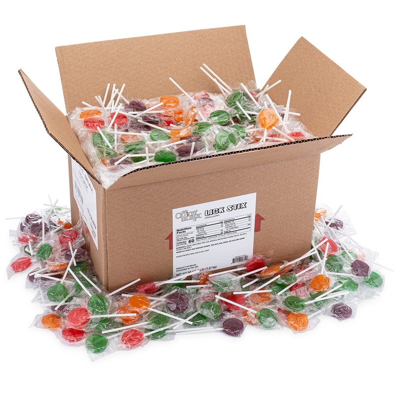 - Lick Stix suckers come in seven assorted fruit flavors.