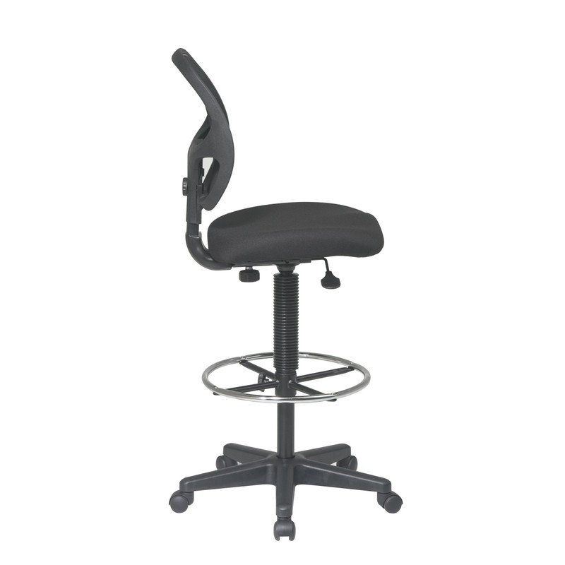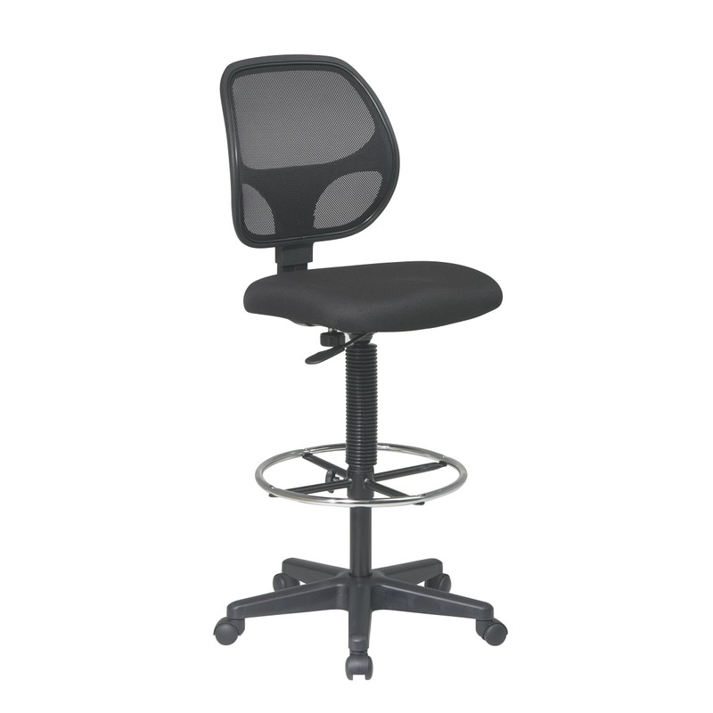 Office Star Deluxe Mesh Back Drafting Chair with 18.5" Diameter Adjustable Footring, Black Fabric Seat