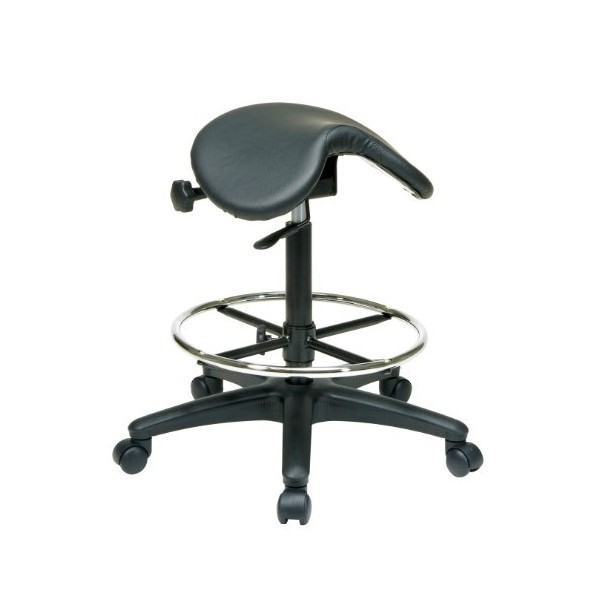 Office Star Drafting Backless Stool with Saddle, Foot Ring, Seat Angle and Pneumatic Height Adjustment, 25 to 35-Inch, Black Vinyl