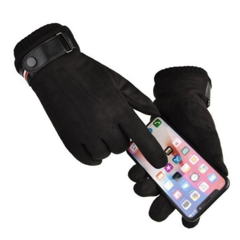 Office worker middle-aged gift touch smart men's thermal brushed suit gloves Suede Black/FREE 5ea