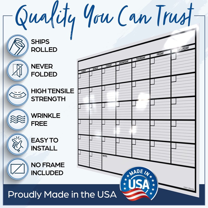 - Easy Breezy Erasing: Our unique PET Film will make erasing month-old marks as easy as day-old marks. Rest assured, your calendar will stay clean and neat by never staining, or leaving ghost marks!