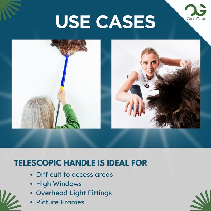 • PREMIUM QUALITY FEATHERS: Made from high-quality ostrich feathers from South Africa, this anti-static duster is soft, flexible, and durable. Perfect for delicate and valuable items, it effectively picks up dust without scratching surfaces, making it an ideal office or household cleaning tool.